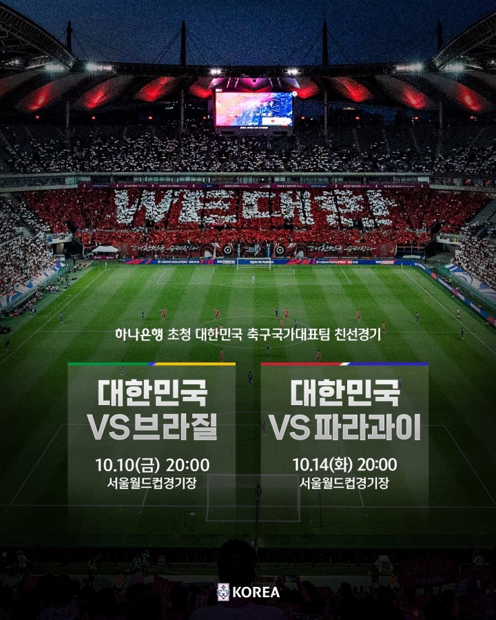 除此以外,韩国队还将在北京时间10月14日19点对阵巴拉圭,地点同样为首尔世界杯体育场。